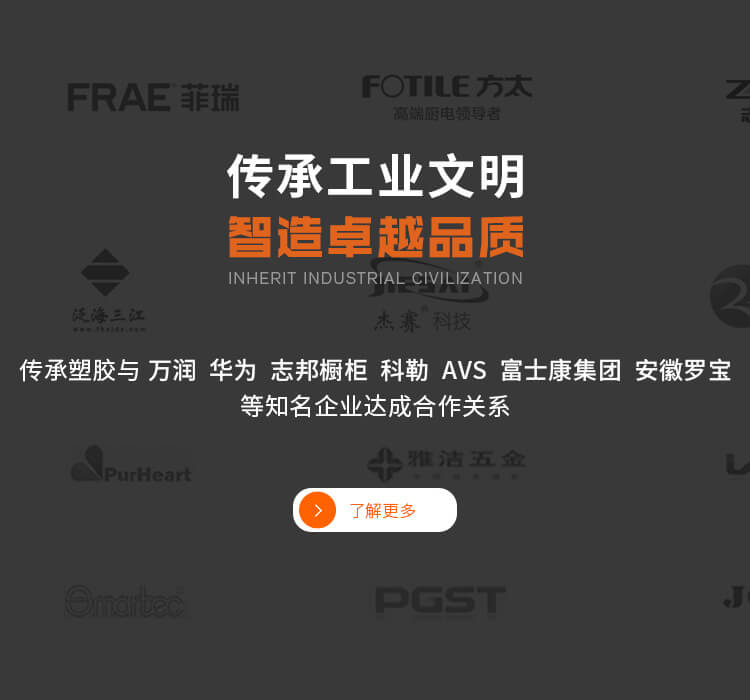 東莞傳承塑膠電子有限公司創立于2008年,位于世界制造業名城廣東省東莞市。以傳承工業文明 ,智造卓越品質為已任。經過十余年發展沉淀致力于打造為塑膠標準件行業的優秀標桿企業?,F有職員50余人,業務遍及60多個國家和地區,服務多家知名企業,如:科勒華為、歐司朗 、方太、中國建筑工程公司、AVS等。 公司主營產品有塑料膨脹管,塑料螺絲保護帽,配線器材等類產品。經過十余年的研發創新與管理實踐,在渠道供應鏈,產品設計,生產管理方面具備較高專業的技能及大客戶服務能力。截至2020年底,累計申請有產品專利三十余項,能根據客戶要求開發模具及定做非標產品,產品符合環保認證,UL阻燃認證,抗老化UV認證等。 公司目前已成為國內外多家知名企業的長期合作伙伴,我們秉承“客戶第一,誠信 ,創新,合作共贏”的經營理念,愿與您攜手共同打造更加優質的產品與服務。